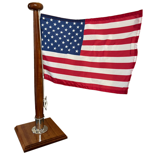 - American made mahogany flagstaff with custom nameplate available for the Luxe Logo