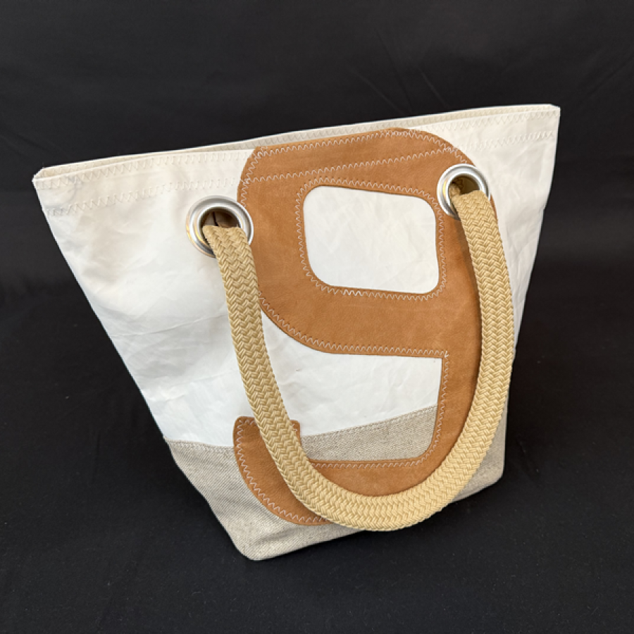 Recycled Sailbag Legend Handbag featuring Linen and Camel Leather with Recycled Sails